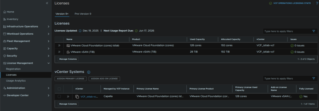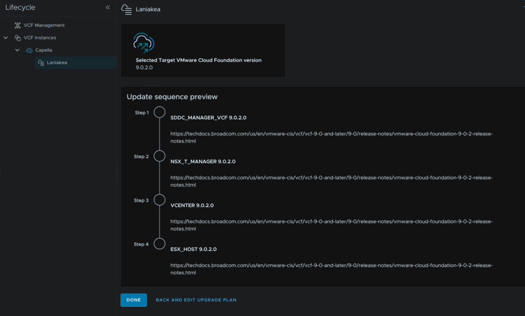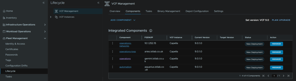 We can manage the lifecycle of all VCF appliances from here, with both VCF Management
