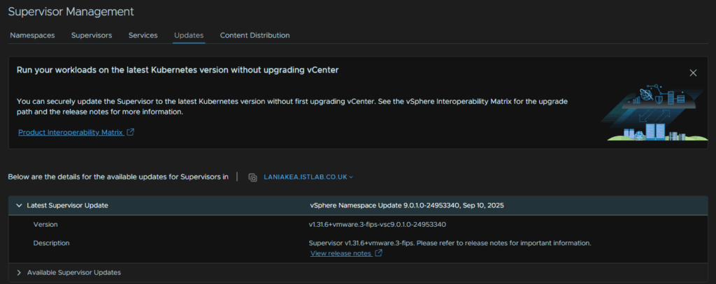The supervisor can be configured to pull from the online content library for update files, then we can see the latest Supervisor update