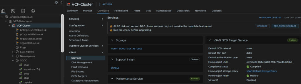For vSAN 9, we just need to do a disk format, which we can do from vSphere, running pre checks and then upgrading